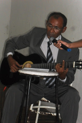| O escritor Batista cantando em Tupí. |